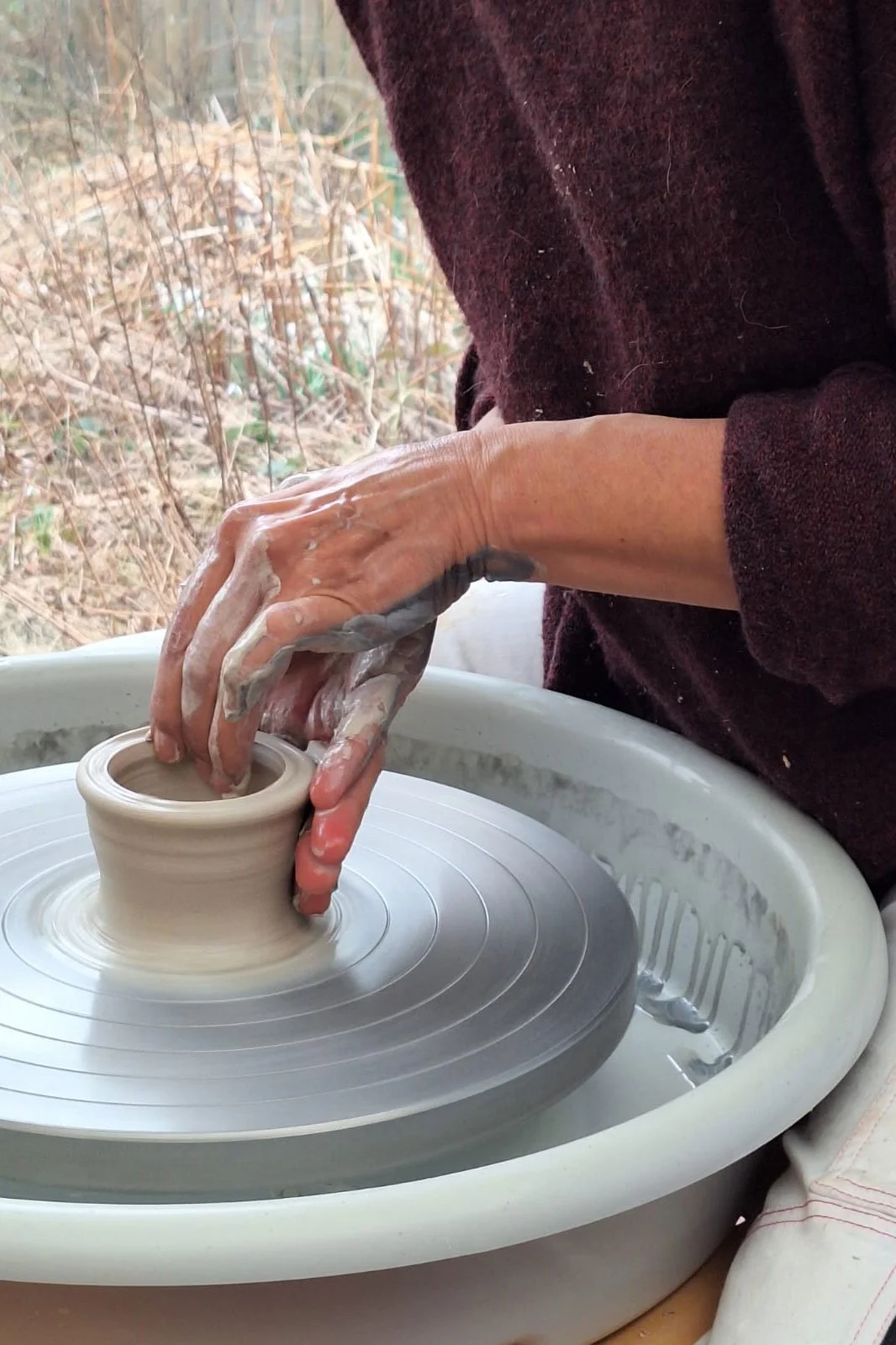 Das Drehen an der Töpferscheibe verlangt die absolute Zentrierung und Aufmerksamkeit von mir. Dabei wird jedes Stück nach höchsten ästhetischen Ansprüchen gefertigt.